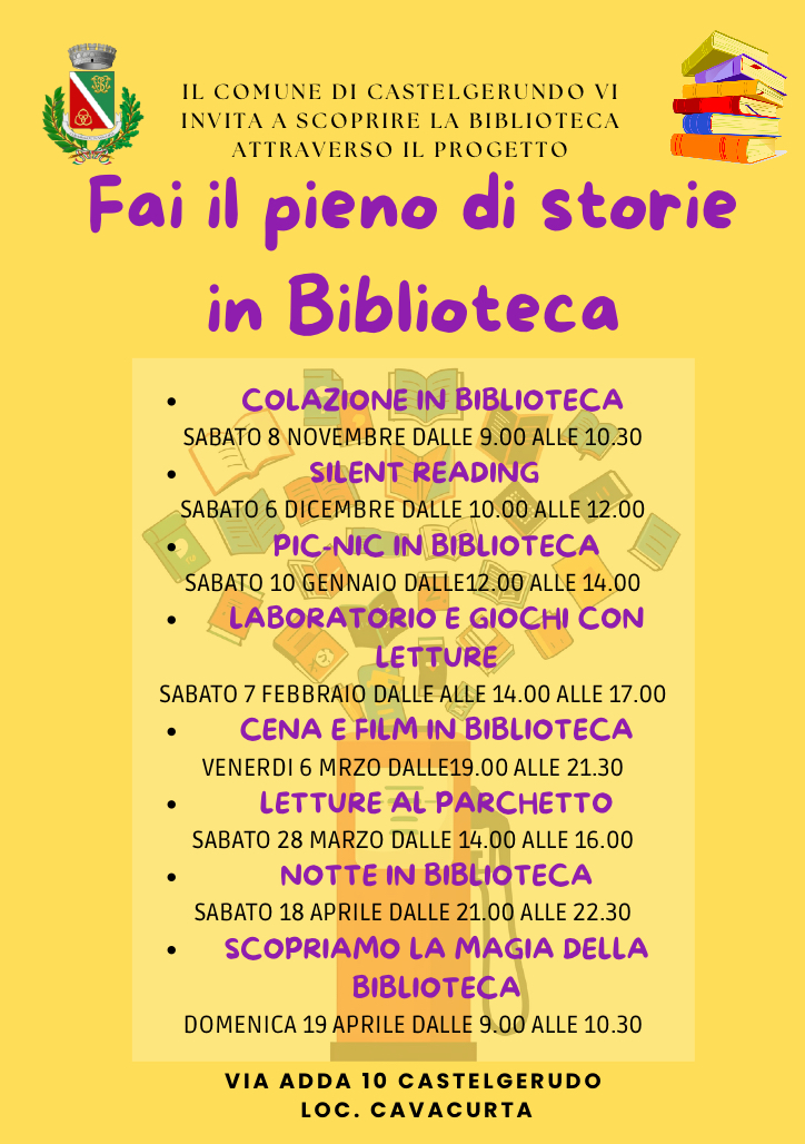 IL COMUNE DI CASTELGERUNDO INVITA A SCOPRIRE LA BIBLIOTECA